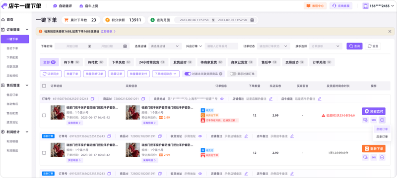店牛一键下单提供货源平台一键下单、自动下单、自动售后、多店管理、利润统计、自动邀评等多重解决方案